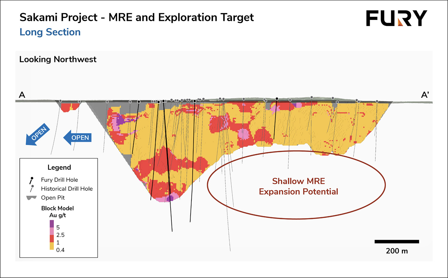 The La Pointe Extension resource remains open in all directions (Figure 1) with near-term opportunity to expand the MRE to the northeast and southwest as well as beneath the optimized open pit where it is limited to 175m below surface (Figure 1).